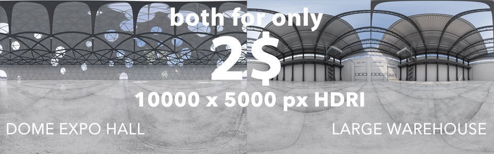 I'm happy to introduce to you two completely new and original HDRI interior 360 maps. They are both in 10.000 x 5.000 pixels resolution in full 32bit, made with 3ds Max and rendered with Vray. On all of th maps camera is positioned on 1,75 m height. I made test renders with Keyshot, but you can use any application of your choice as a light source or background.